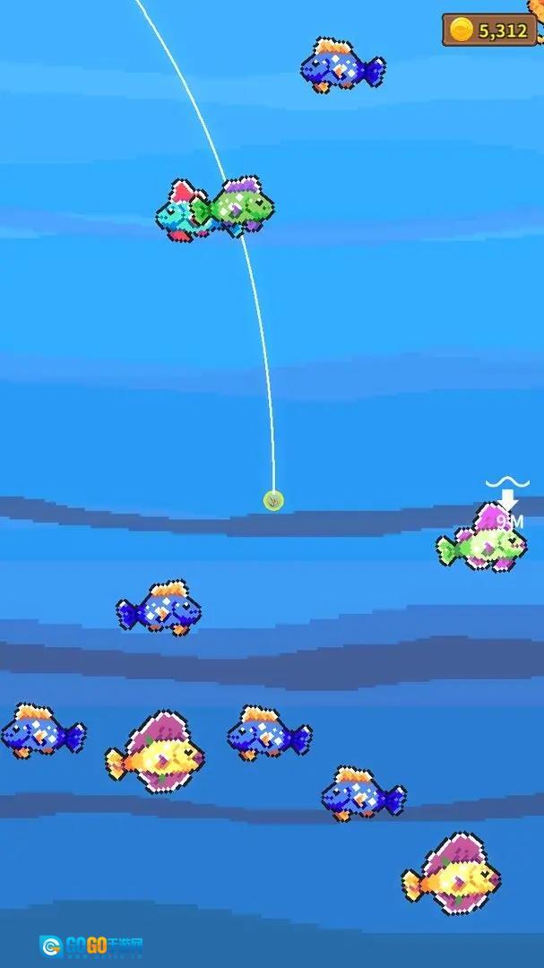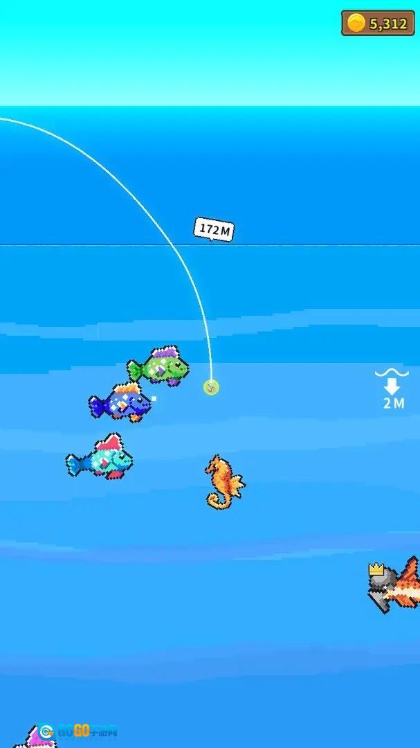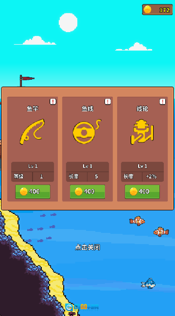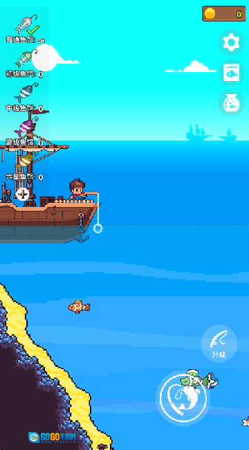 通过售卖钓到的鱼赚取金币,就能不断升级你的钓竿之类的装备,进而可以把鱼线投向更辽阔的海域,探寻更深的海底世界。
