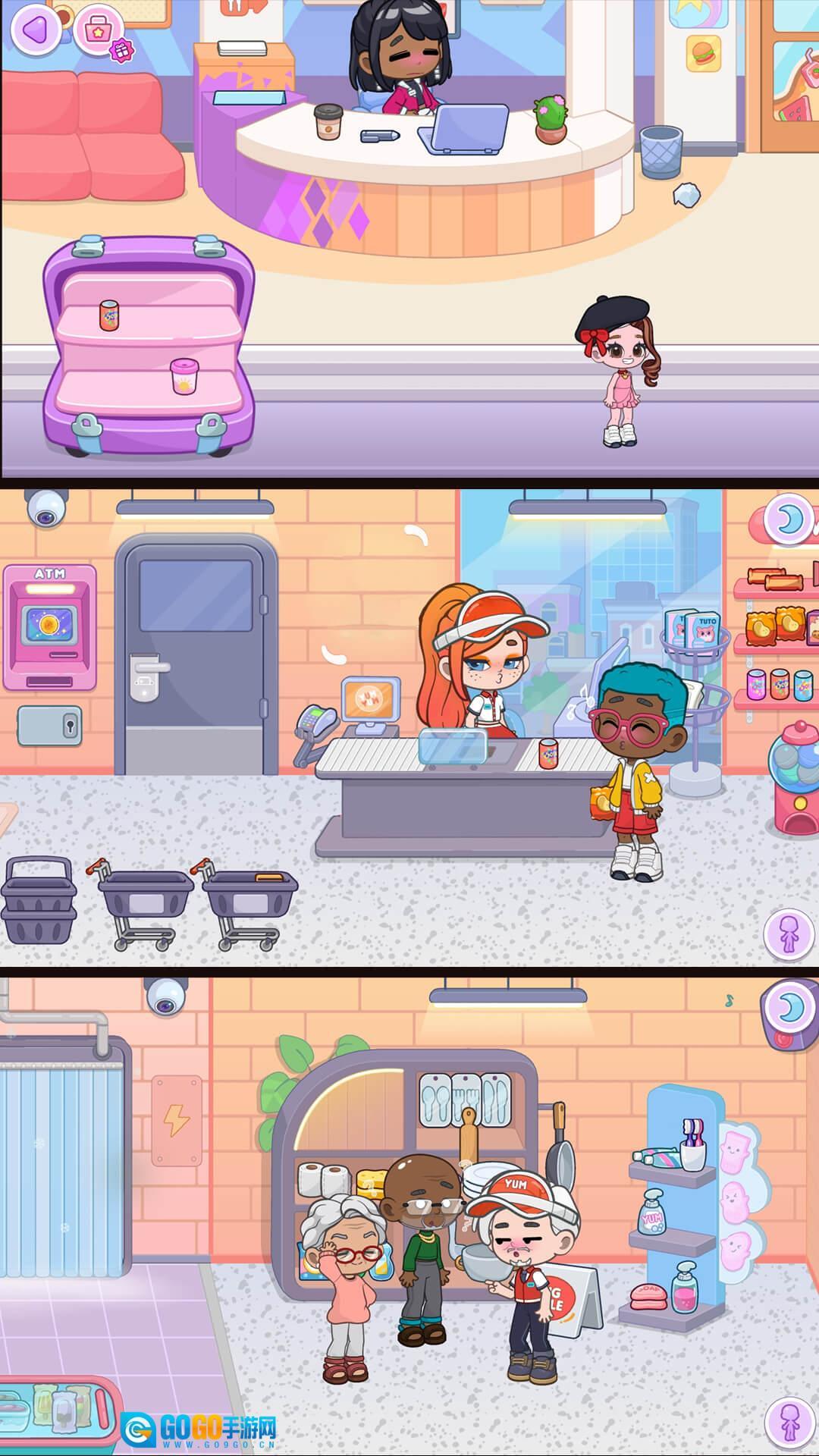 包含社交经营玩法,在咖啡馆等场景中,可选择店主身份打理店铺、制作餐食,或作为顾客参与互动,拓展小镇社交关系网络。