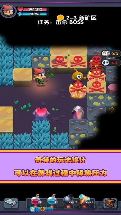 游戏采用简洁明快的卡通画风,玩家能通过快速升级矿工角色,大幅提升采矿效率,使探索过程变得更流畅、更有趣。