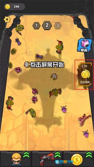 点击屏幕即可进入游戏,在游戏主界面的右侧会显示金币累积情况,玩家点击“领取”按钮就能获取金币。