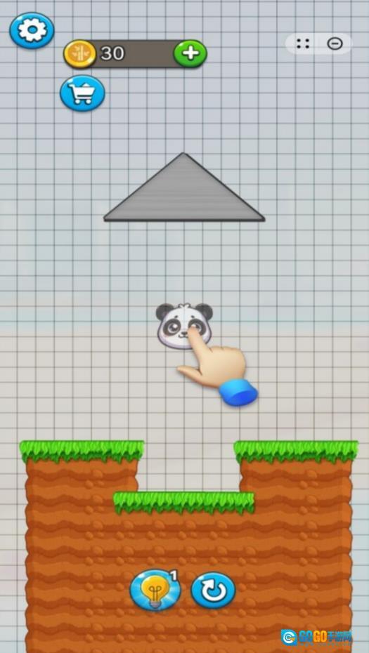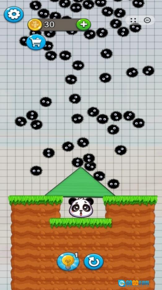 点击熊猫头像让它降落到场景的空隙位置,移动三角形之类的道具来遮挡空隙,搭建起安全的防护屏障以抵御黑球的攻击。