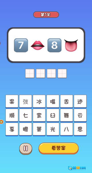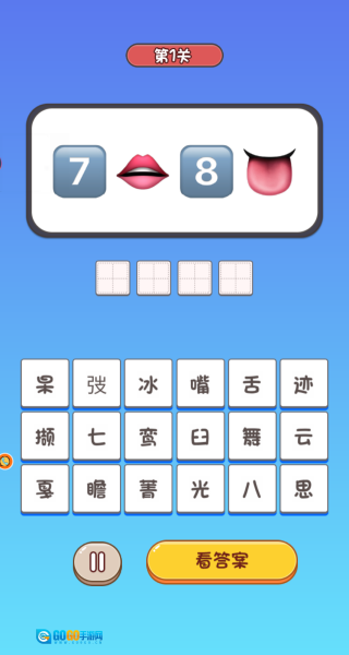 观察关卡里的表情符号组合,借助字面含义或者谐音提示,在空格处填写对应的成语答案。