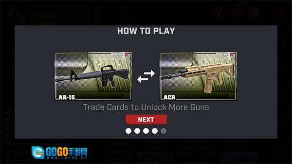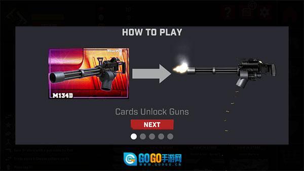 进入游戏后会有新手引导,通过使用卡片就能解锁对应的目标枪支。