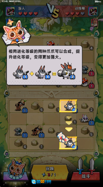 第二回合开启,接着进行召唤,若召唤出相同的爪爪,就能将它们合并为更高级的爪爪。