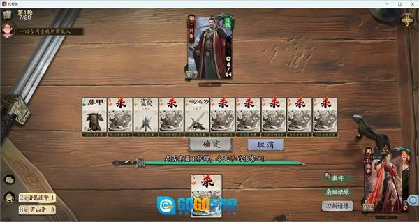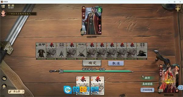 以上操作结算完毕后呈现的画面如下,接着对刘备使用杀,同时弃置一张杀来触发“开山斧”的特效以增加伤害,最终取得胜利。