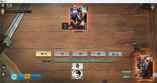 连饮两杯酒,随后把“易”牌当作杀打出,成功获胜。需要注意的是,将“易”牌作为杀使用时,得先选定目标。