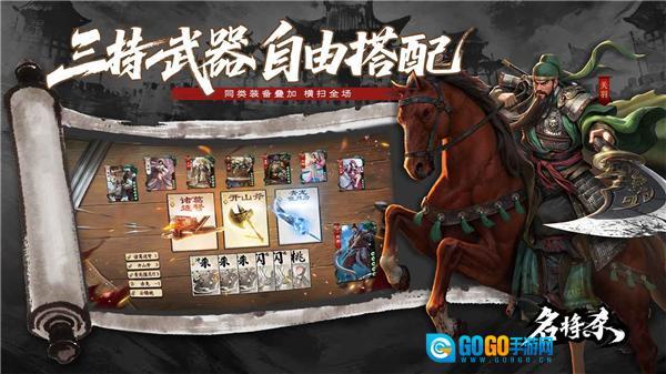 每名武将能够同时配备三件武器,效果会叠加,以此达成自由且多样的战力构建。