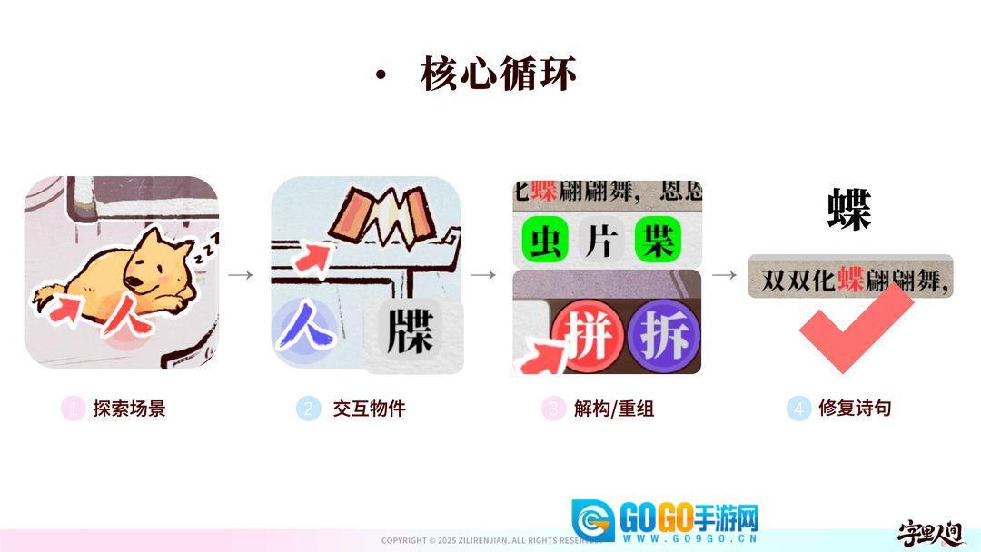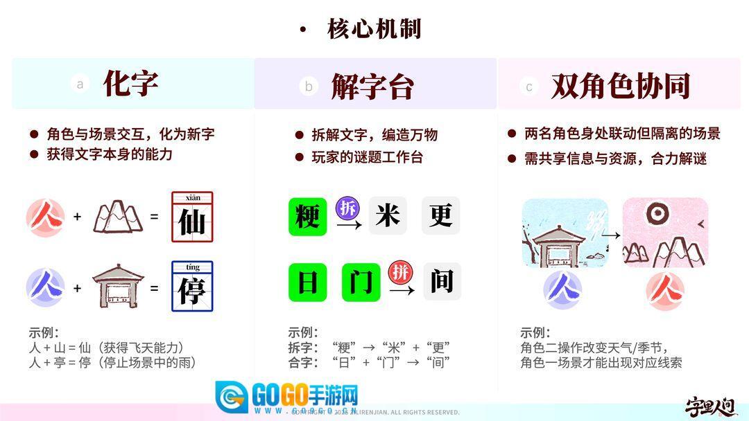 玩家需要对汉字的笔画进行拆解与重组操作(例如把“森”字拆分成三个独立的“木”字),以此来触发机关或是开启新的区域。