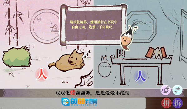 打开游戏后进入第一个故事,按住屏幕通过摇杆就能在书院里自由行走。