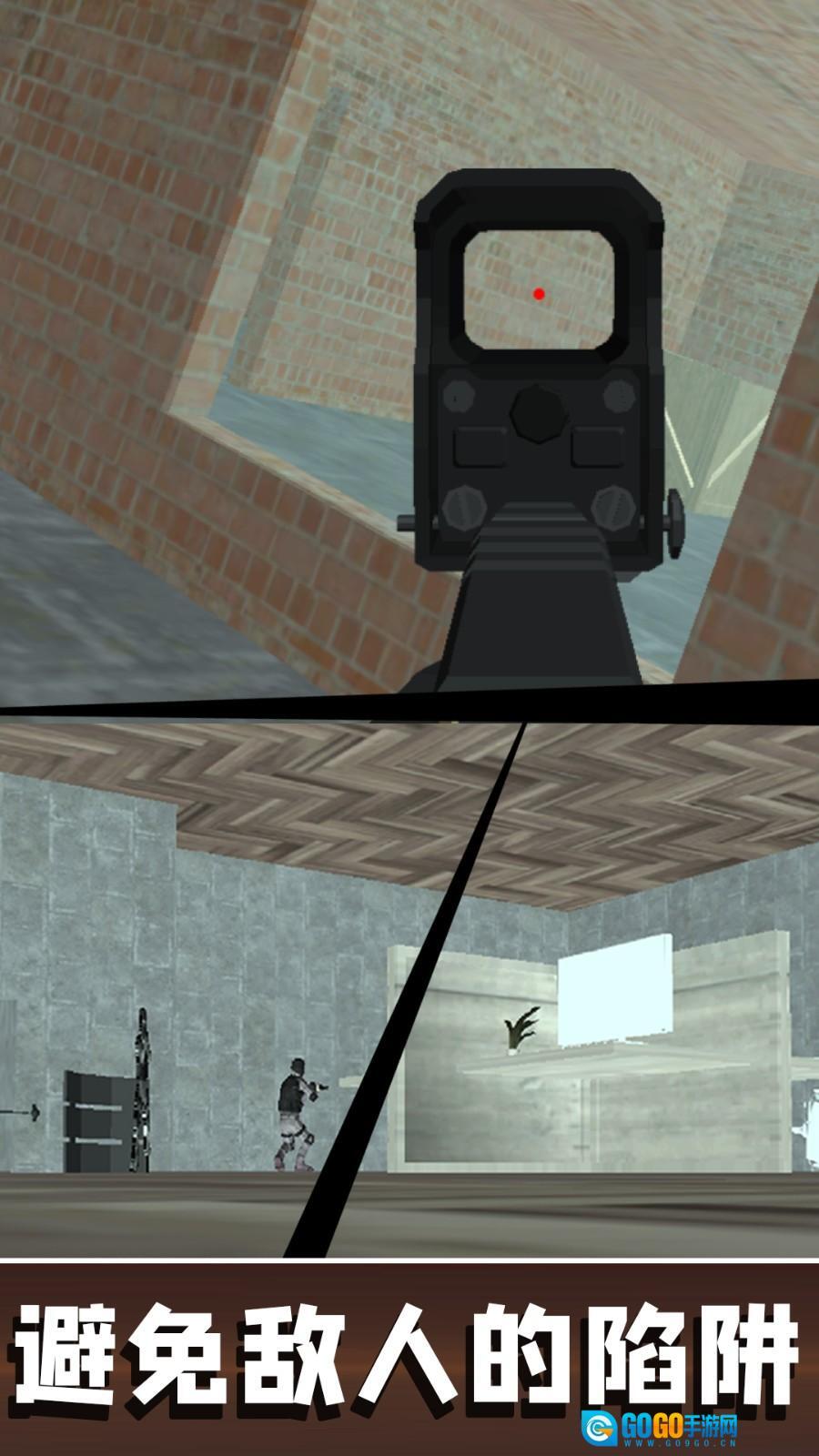 玩家进入地图后需与敌人展开枪战,要主动探索地图以发现敌人踪迹,锁定目标后进行精准射击。