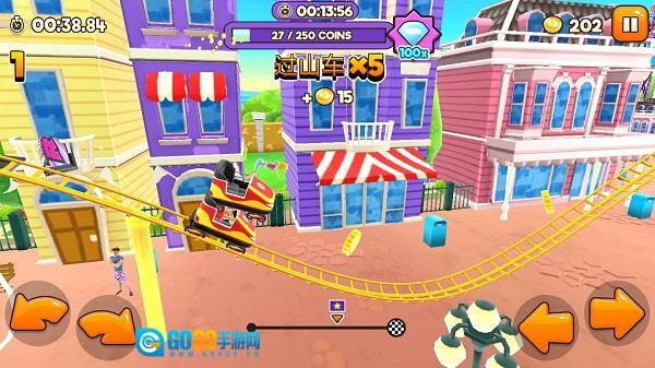 在部分游戏模式里,玩家能在特定节点收集空中金币或完成挑战以获取分数,进而解锁新的过山车或场景。