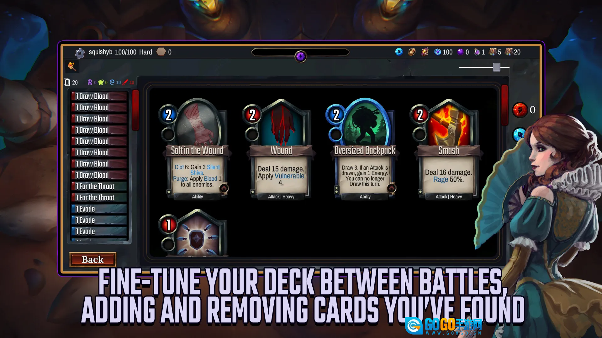 灵活调整牌组:这不是传统的牌组构筑游戏。你能够在每场战斗开始前灵活更换卡牌。面对不同的敌人,及时调整策略——比如把流血牌换成狂怒牌,说不定就能逆转战局。