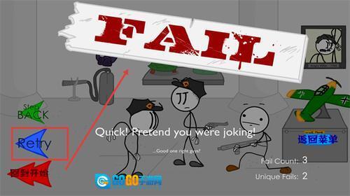要是行动失败引发警报或者被抓住了,就点击蓝色的Retry按钮重新开始尝试,调整一下策略、换个道具或者路线再挑战一次。