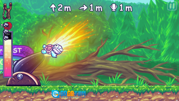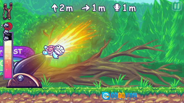 提供了极其丰富的发射工具,从经典的投石机、火炮,到疯狂的火箭背包、电磁炮,乃至天马行空的“核武器”礼花。 2、采用色彩明亮、造型夸张的Q版卡通美术风格。乌龟角色形象憨态可掬,在被发射、翻滚、碰撞时会展现出丰富搞笑的表情和动作。 3、关卡中散落着多种即时生效的功能道具,如在空中可二次加速的“推进器”、能弹飞乌龟的“超级蹦床”、以及清除障碍的“炸弹”等。