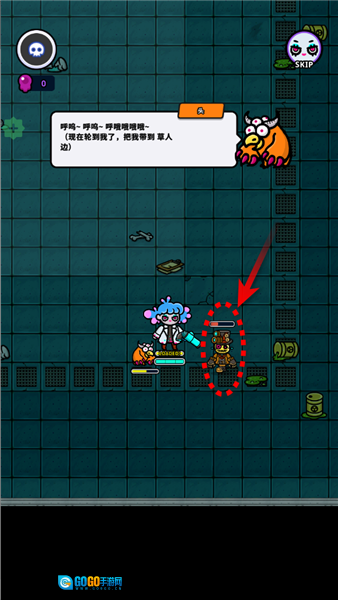 移动与探索:滑动屏幕下方区域,就能操控科学家Zen在地图里移动,探索随机生成的地下区域。