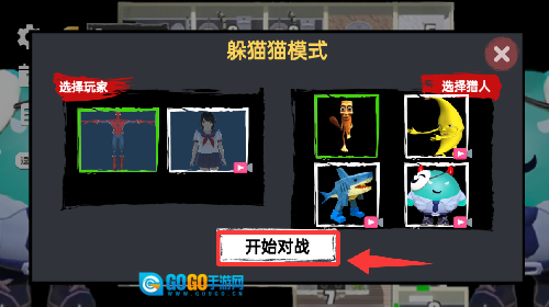 在游戏模式选择界面里,点击第一个“躲猫猫模式”就能进入。