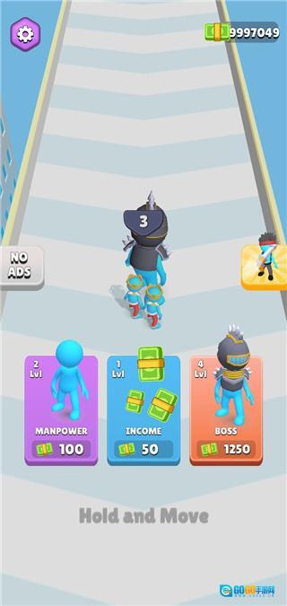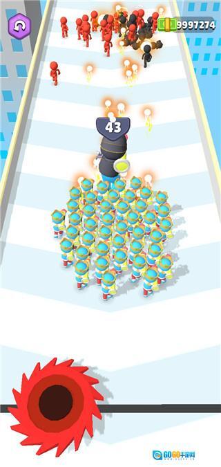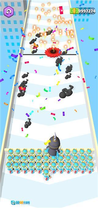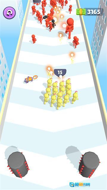 在行进过程中不断攻击迎面出现的敌人,同时收集场景里的队友来逐步壮大己方队伍的规模。