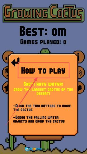 查看教程的方法是:点击“HOW TO PLAY”按钮,就能知晓“通过点击左右按钮移动仙人掌、躲避落水”的基础操作。