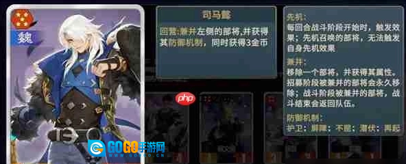 司马懿:作为万能回收中枢,能够完美承接屏障、不屈、护卫、再起、潜伏等所有机制效果;建议优先投入屏障与不屈类效果,再起类效果的收益相对更低。