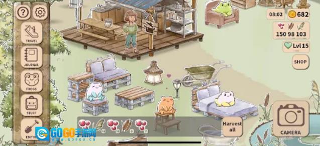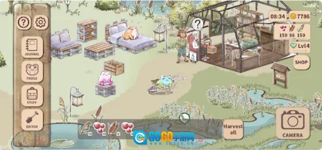 3、以生态为主题的寓教于乐模式,通过种植本地植物、恢复湿地等玩法,让玩家在游戏过程中了解自然知识与可持续发展理念。青蛙饲养与互动:通过喂食、照料以及趣味小游戏增进与青蛙的亲密度,从而解锁更多珍稀蛙种。