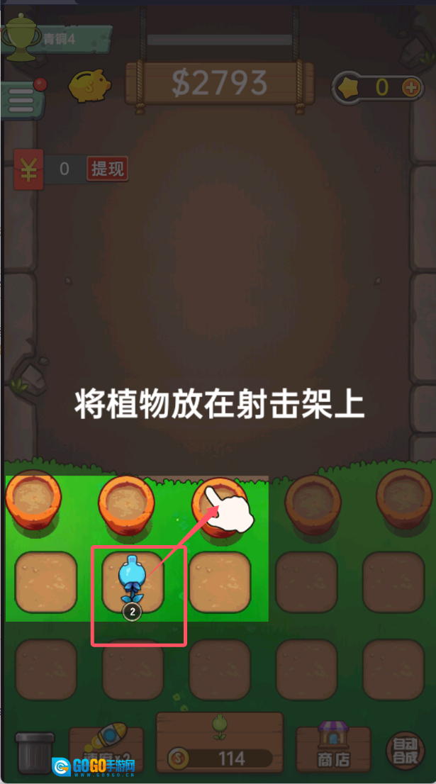 学习合成操作:根据指引,把两个相同的植物拖拽至一处完成合成,以此升级为更高级、更厉害的单位。