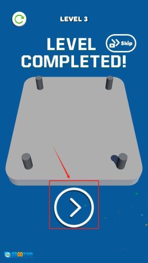 进入下一个挑战:点击右下角的箭头按钮,就能通过当前关卡并进入第二关。