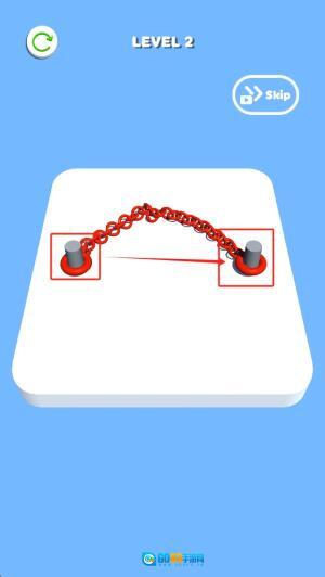 持续进阶挑战:完成当前关卡后,再次点击箭头按钮,迎接更高难度的绳结谜题。