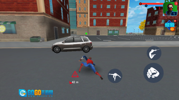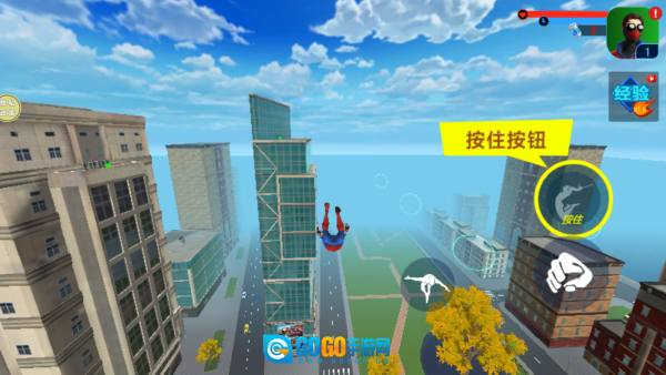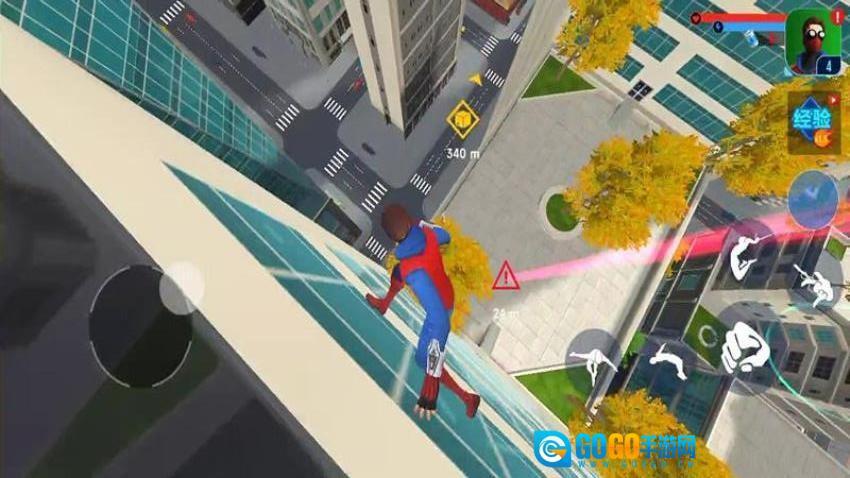 你能够发射蛛丝,并且通过巧妙地结合跳跃与冲刺动作,在城市高楼之间实现高速的移动和摆荡。