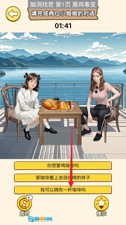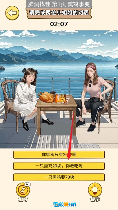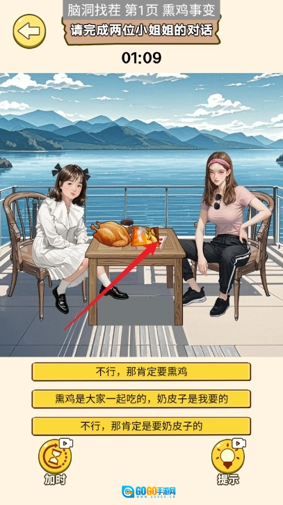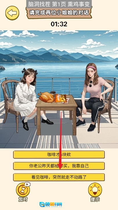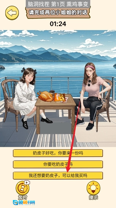 8、上滑右边小姐姐的口袋,将钱移动给左边的小姐姐