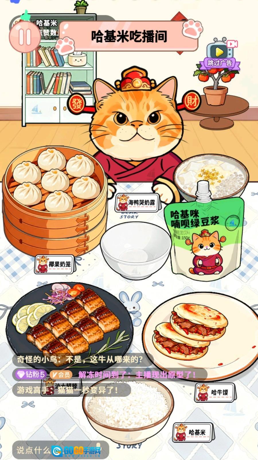 开局选自由吃播模式,给哈基米投喂不同食物,观察记录它的反应特点,攒初始金币,解锁更多食谱。