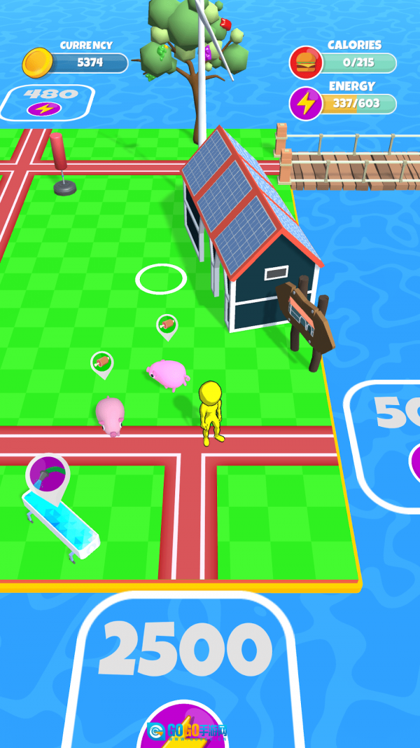 通过种植农作物跟水果累积资金,解锁不同地皮。