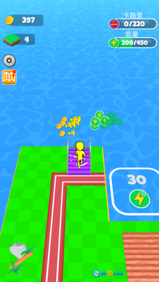 走到紫色的跑道上面,快速奔跑就有金钱收获。