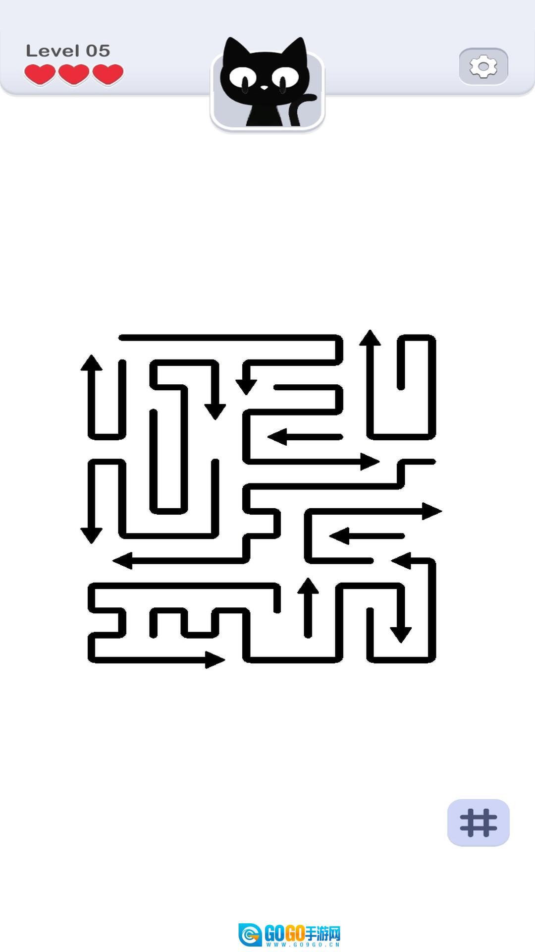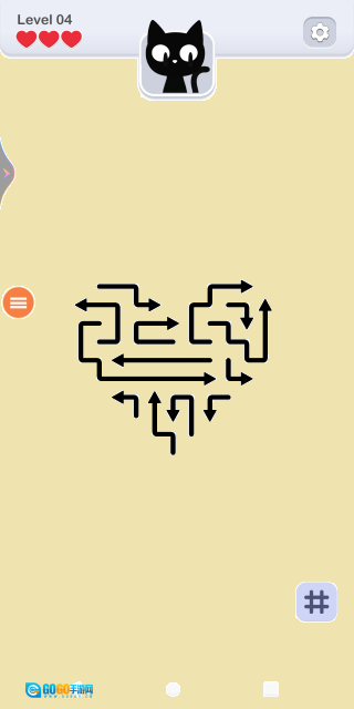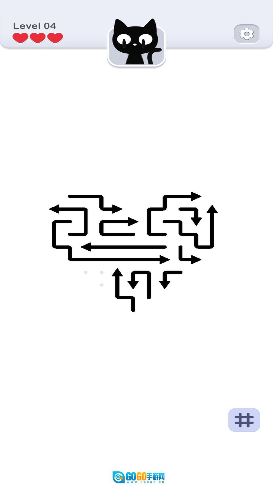 请注意,每个关卡玩家都拥有三次试错机会,一旦箭头在移动过程中出现碰撞,就会扣除一颗红心,当所有红心都被扣除后,挑战便会失败!