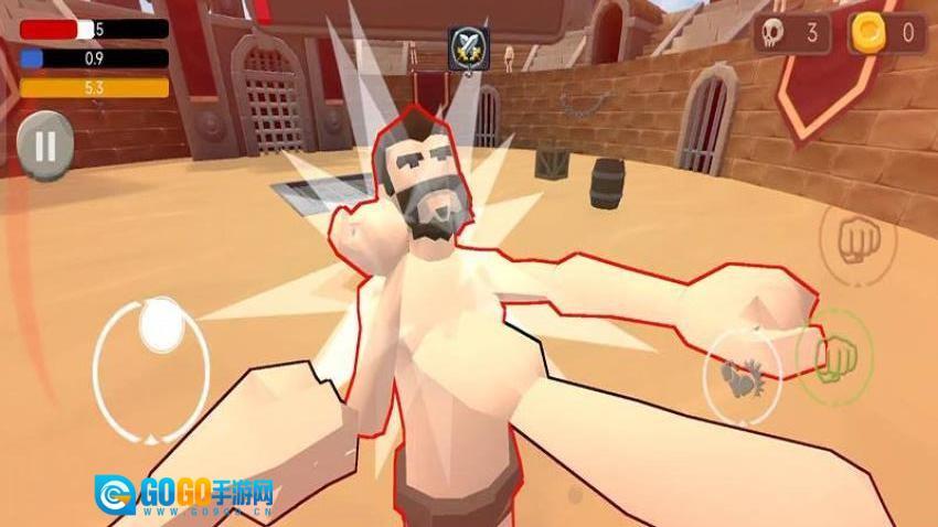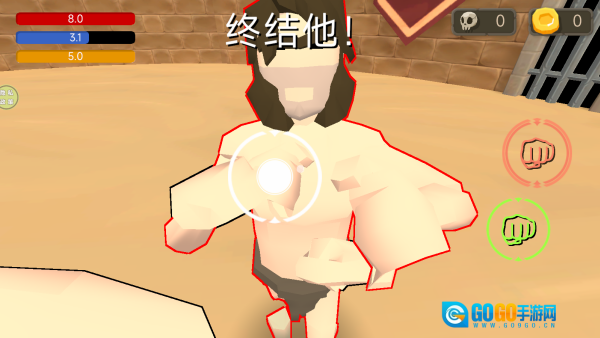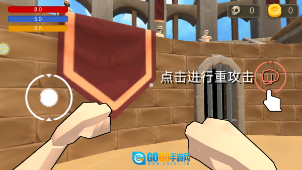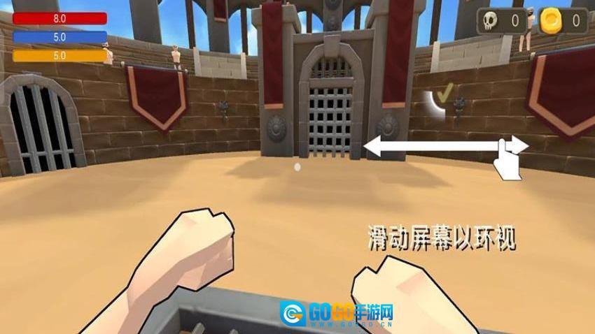 点击“开始游戏”按钮,通过滑动屏幕来调整视角,环顾角斗场的各个角落,以此熟悉这里的环境布局以及敌人的分布状况。