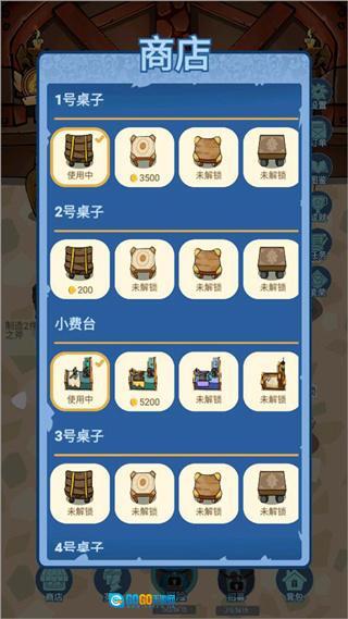 打开店铺,购置小费台与桌子,并把它们摆放于店内。