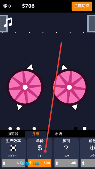 升级操作:花费一定数量的金币(例如500)来提升“单价”这类属性,以此增加生产所带来的收益,从而推动游戏进度向前发展。