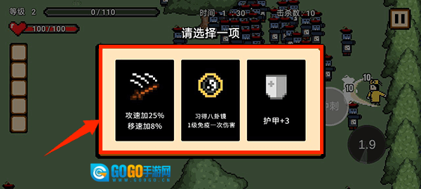 进入游戏,开战前,选择一个技能进行开始。