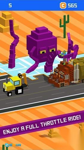 场景穿梭:在像素风格的不同场景里,比如蘑菇丛生的林地、城市里的道路以及沙漠地带,玩家可以操控像披萨车、机器人这类角色,让它们穿过马路,同时避开车辆、巨型生物之类的障碍物。