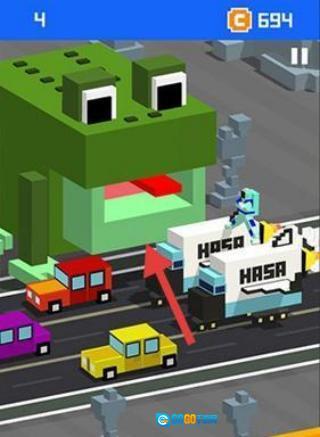 生存挑战规则如下:游戏的第三、四、五关等各关卡中,玩家需要在穿梭的车流与巨蛙、章鱼等特殊生物之间寻找前进路线;若能顺利通过当前关卡,即可进入下一个游戏场景,同时游戏界面会显示不断累积的分数,比如“433”“694”这类具体数值。
