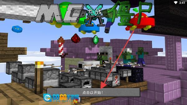 游戏的启动界面上,醒目地呈现着“MC大战僵尸”的标题字样。当玩家点击界面中的“点击以开始”按钮后,即可进入游戏。整个游戏画面采用像素风格打造,其中包含了各类场景以及僵尸等元素。