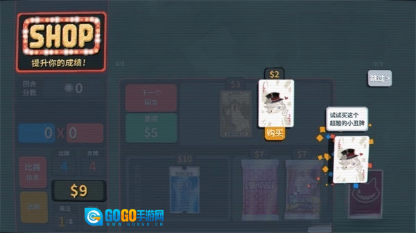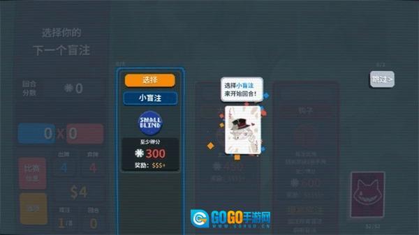 2. 大小“盲注”关卡可跳过,玩家会获得一个奖励,但是也会失去金钱及进入商店的机会。