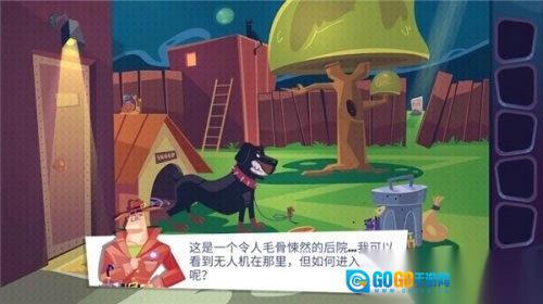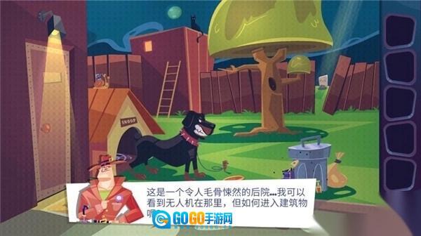 首先玩家进入游戏后,选择第一关“后院”场景。院子里有一条凶猛的大狗拦路,玩家需要按以下步骤通关:先在垃圾桶旁找到锯子,接着打开垃圾桶,从中取出镐头;随后在院子里找到一把梯子,将梯子架在院子的大树旁,点击使用锯子锯下一段木头;把锯下的木头和背包里的镐头组装起来,用组装好的工具挖开院子里的墓地,就能找到一根骨头;此时大狗会变得温顺,玩家再找到地板上的出口,打开阀门即可离开,第一关便顺利通过了。