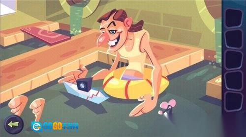 从右侧纸箱中取出插栓,拿出箱内的纸船部件。点击拾取当前光标处的纸船部件,再拿起图中的黄色502胶水。用502将纸船零件粘合成完整纸船,把纸船放入水中,会得到一只受惊的老鼠。将老鼠放到下图指定位置,老鼠跑动后开始通电。按下电闸开关,左侧通水管道关闭,水位下降,露出下图所示的插梢,把插梢放入镜中的框内。转动插梢,镜子随之下降,露出扶梯,即可通过此关卡。