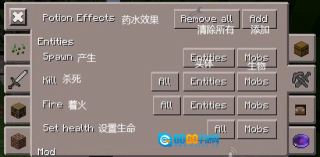 15.Kill栏可选择要消灭的生物或实体,也能清除地图里的所有物品。