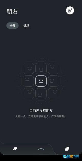 4.点击右上角的【笑脸】图标,即可跳转到好友栏,在这里你可以和你的好友联系,也可以点击右上角添加好友。