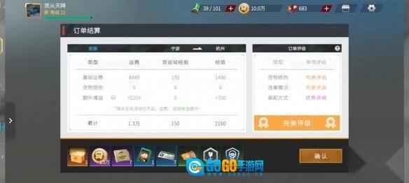 5、完成一笔订单后,你将获得运费并增加经验值。