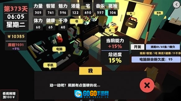 4、除了管理属性和赚钱外,玩家还需要应对房租、健康问题等各类生活事件。