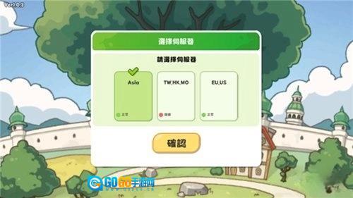 1、进入嘟嘟脸恶作剧国际服,选择你所在的区域。