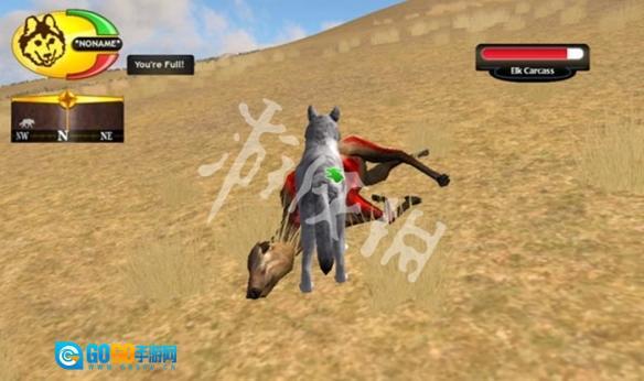 然后另一匹狼转到侧面使劲咬,咬住了就别松口,如果它把你踢下来,就继续上,你不会掉多少血,因为它几乎踢不到你。
