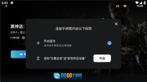 3、玩家若要连接手柄则要开启蓝牙和授权位置信息。